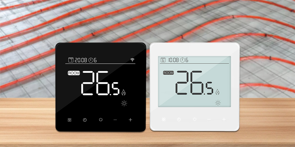 The Elegant Glass Surface Underfloor Heating Thermostat features a sleek, sophisticated design with a stunning LCD screen, delivering an exceptional user experience for precise temperature control. Its stylish glass finish enhances both functionality and aesthetic appeal, making it a perfect addition to any modern smart home.