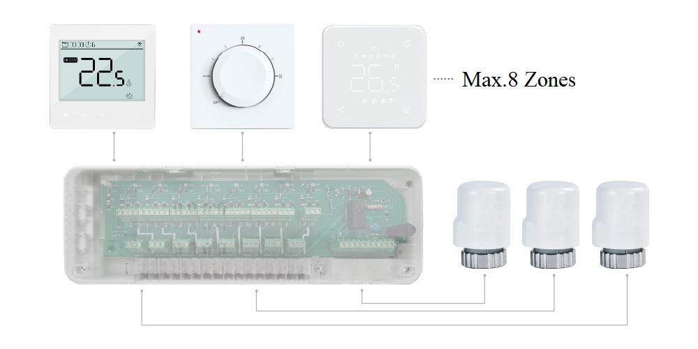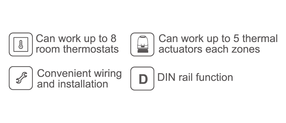• Max. 5 thermal actuator each zone