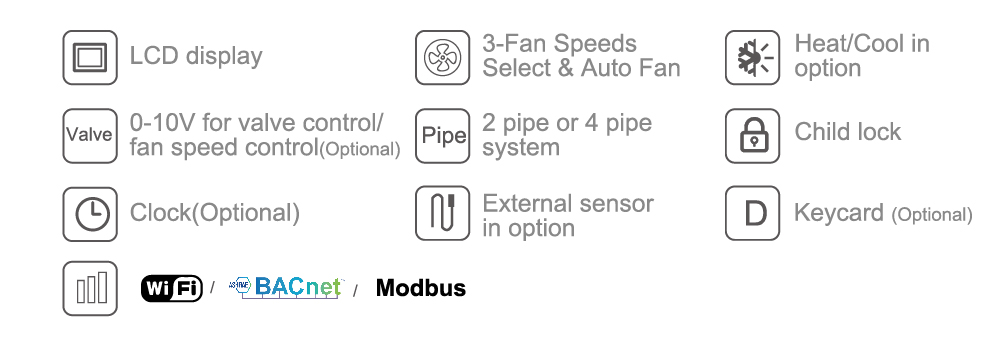 - E-Top BACnet Thermostat | EC Fan Coil | RS485 Modbus | Keycard & Senso