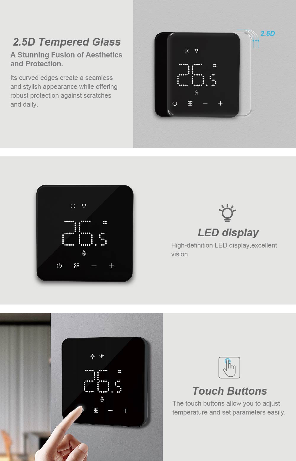 The WT-76 is a versatile wireless RF thermostat equipped with an LED display, offering precise control over radiant floor heating and forced-air heating and cooling systems. As a battery-powered unit, it provides flexible installation and can be integrated into a smart home ecosystem for remote management via a mobile application or voice assistant.
