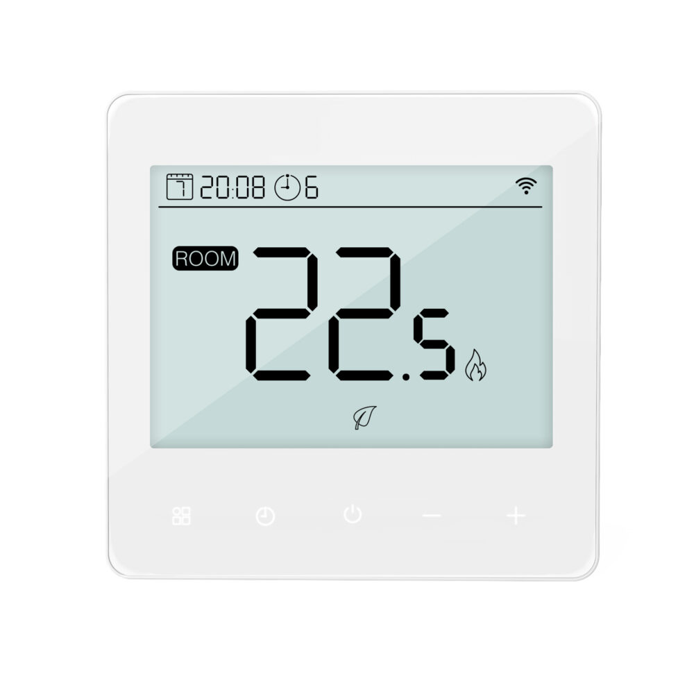 The HT-66 Programmable Thermostat features an elegant design and can adjust temperature throughout the day according to user-defined schedules, thereby optimizing indoor climate control. It is highly suitable for controlling gas boilers and water valves in hydronic underfloor heating systems, ensuring precise heating management tailored to individual needs and preferences.